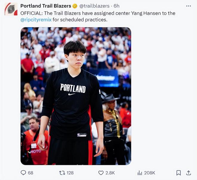 北京时间11月2日,波特兰开拓者官方宣布将2025年首轮16号秀杨瀚森下放到发展联盟球队训练。(开拓者的下属G联赛球队是撕裂之城混音队)