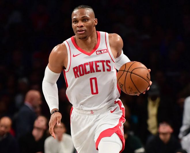 威少只在火箭效力了一个赛季(2019-20赛季),该赛季威少出战了57场常规赛,场均能得到27.2分7.9板7助 1.6断0.4帽,命中率47.2%,这期间威少8次达成三双,今日之前高居火箭队史三双榜第三,不过今日后变成了第四。
